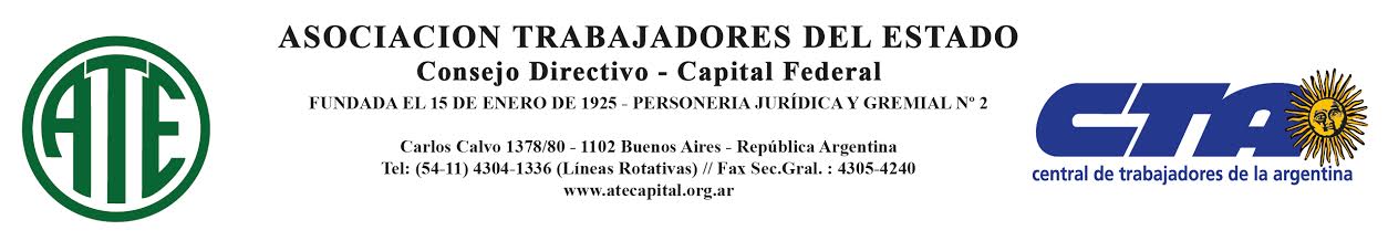 En nombre y representación de la Asociación Trabajadores del Estado (ATE), Consejo Directivo Capital Federal, nos dirigimos a las Juntas Internas con el fin de informar lo siguiente: